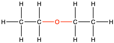 - Draw a molecule of dethyl ether (Ans: CCOCC )