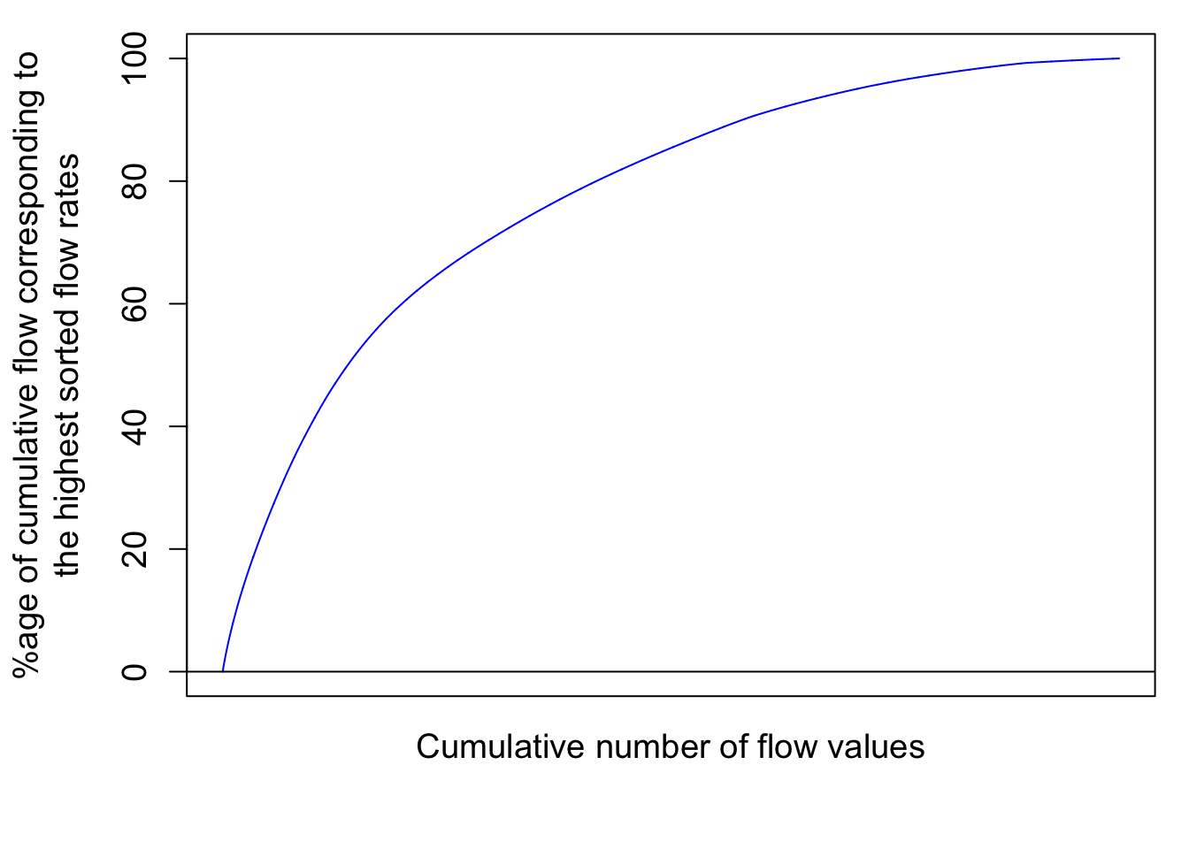 mtext("%age of cumulative flow corresponding to\n the highest sorted flow rates ",side=2,line=3,cex=ScaleF)