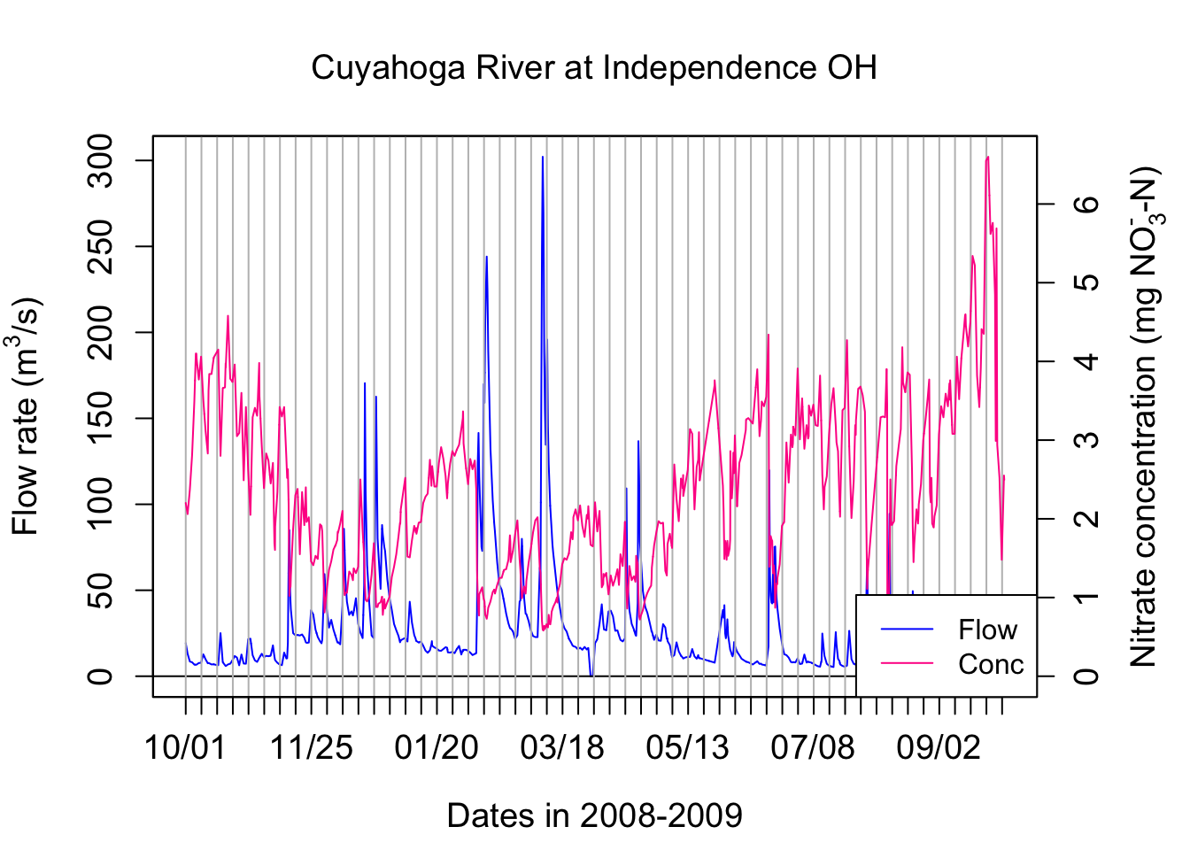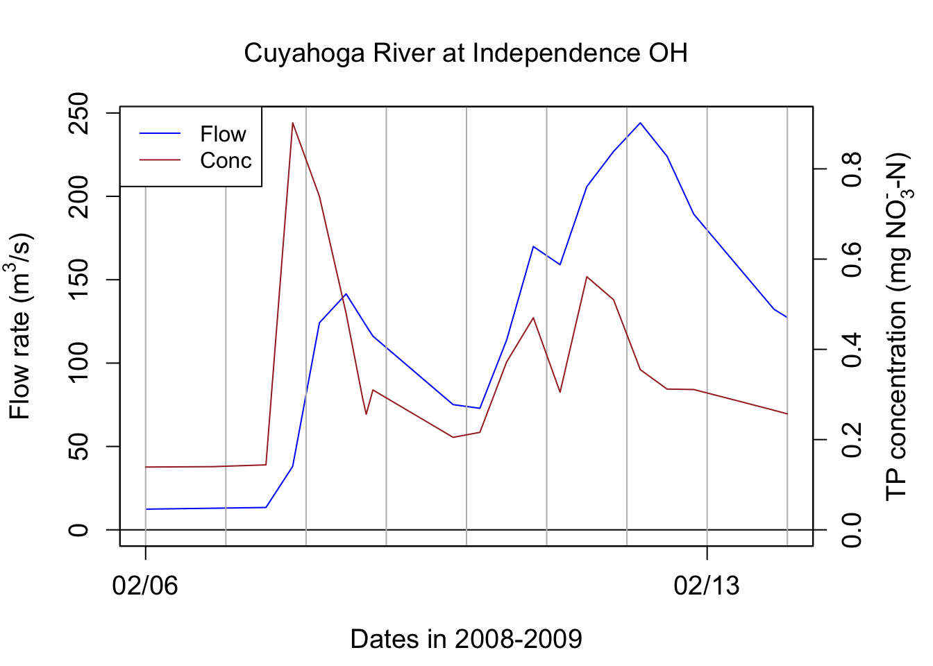 legend("topleft",c("Flow","Conc"),lty = c(1,1), col = c("blue",ColElmt))